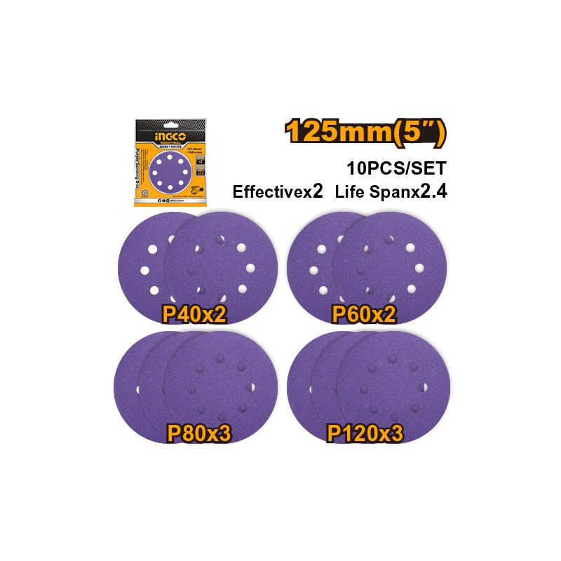 Set 20pz di carta abrasiva da 125 mm con 8 fori