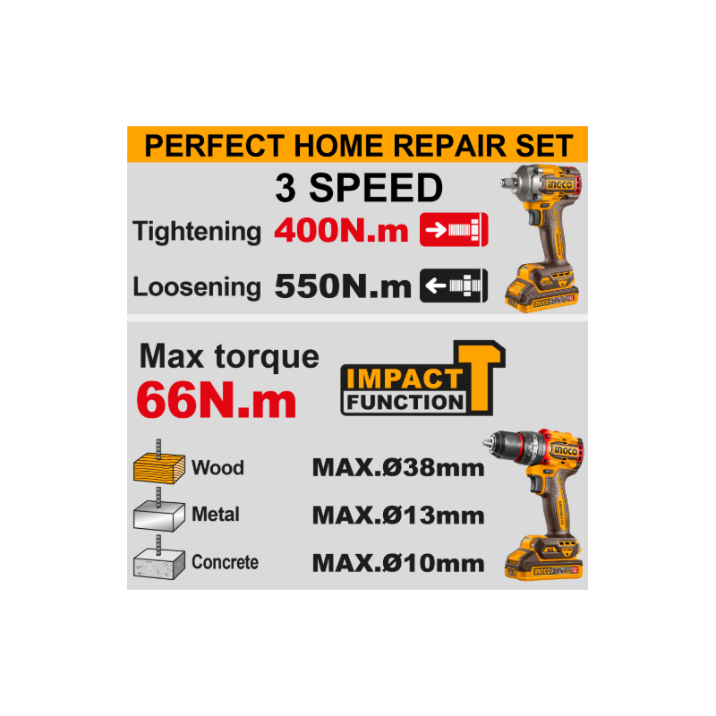 Trapano a percussione 66N.m compatto brushless (CIDLI206681):