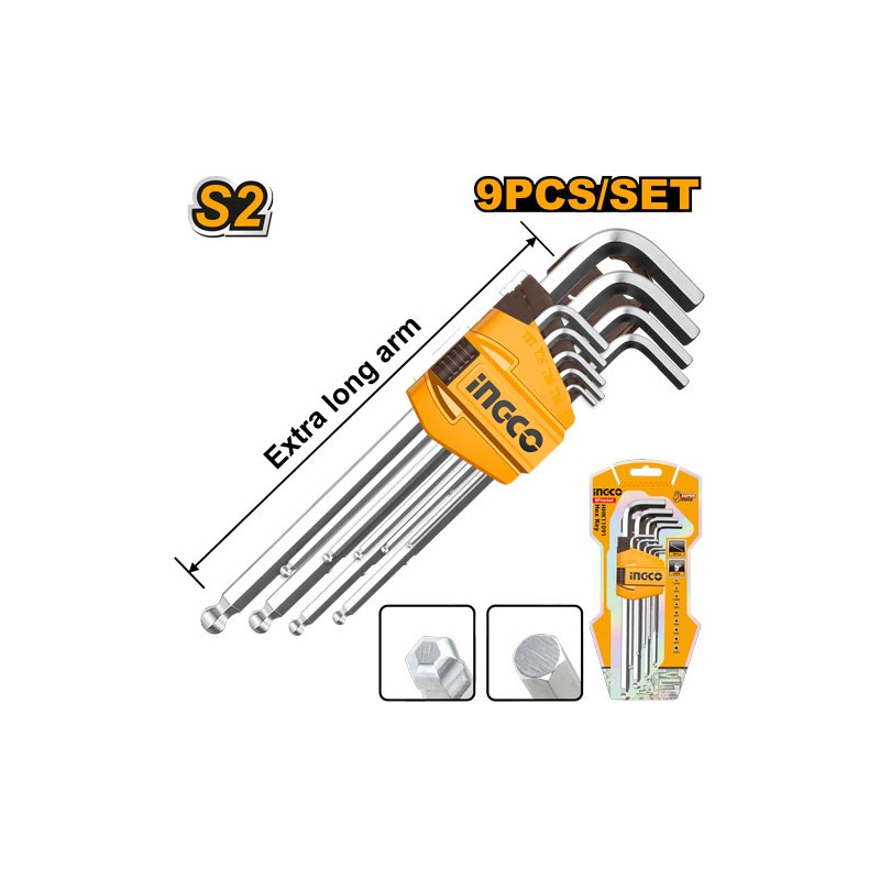 Set 9pz chiavi esagonali a sfera extra lunghe